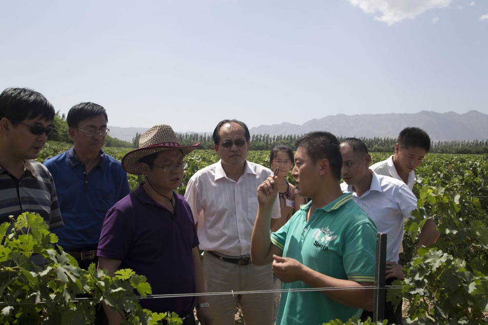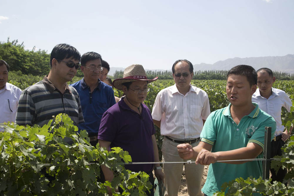 自治區(qū)農(nóng)業(yè)產(chǎn)業(yè)辦公室、永寧縣農(nóng)業(yè)產(chǎn)業(yè)辦公室一行人考察德龍葡萄種植基地